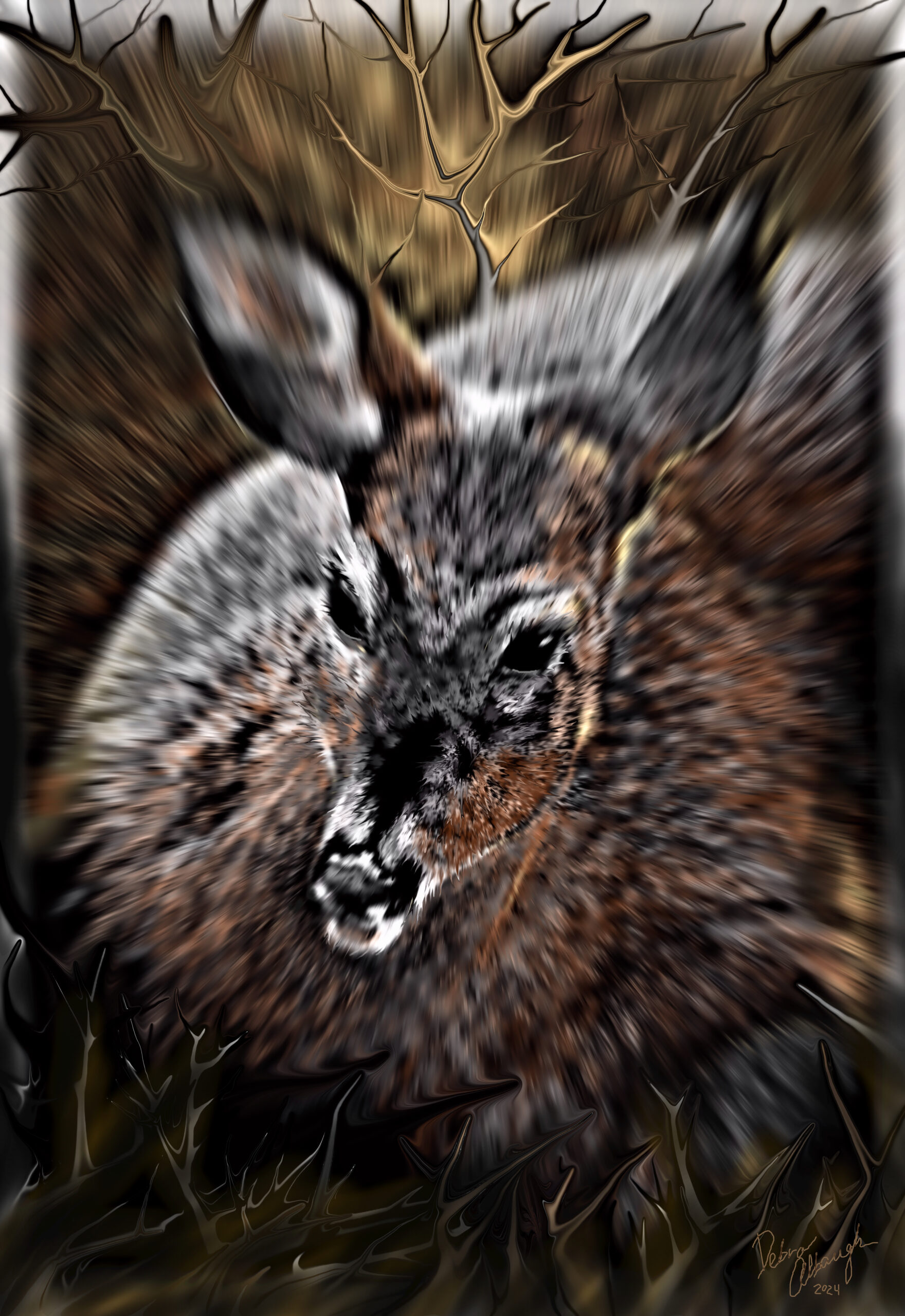 I observed and photographed the deer from my window and they became a subject for painting. My digital painting is from 2025. And is available in a number of print sizes from 8″ x 5.5″ up to 16.5″ x 24″ in print, and on canvas, metal print, and wood print. Also available printed is a sherpa fleece blanket, towel, throw pillow, coffee mug, card, and t-shirts in a range of styles and sizes.