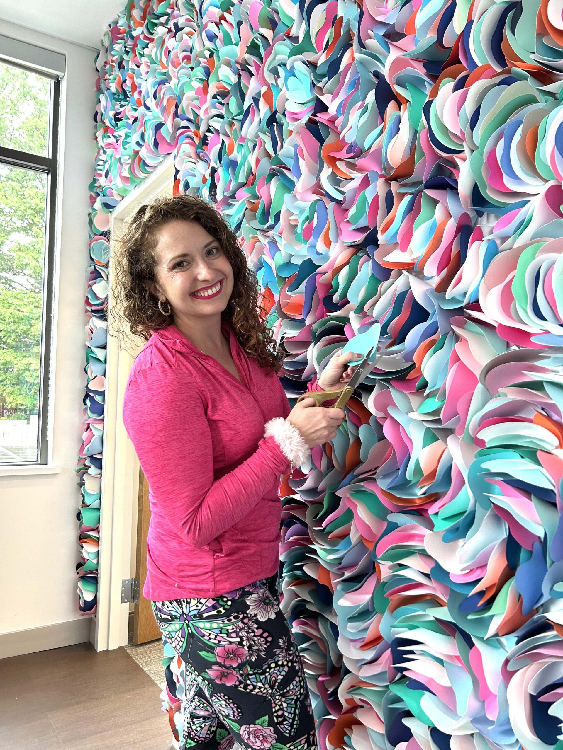 8 ft x 20 ft. Hand-cut paper, painted.