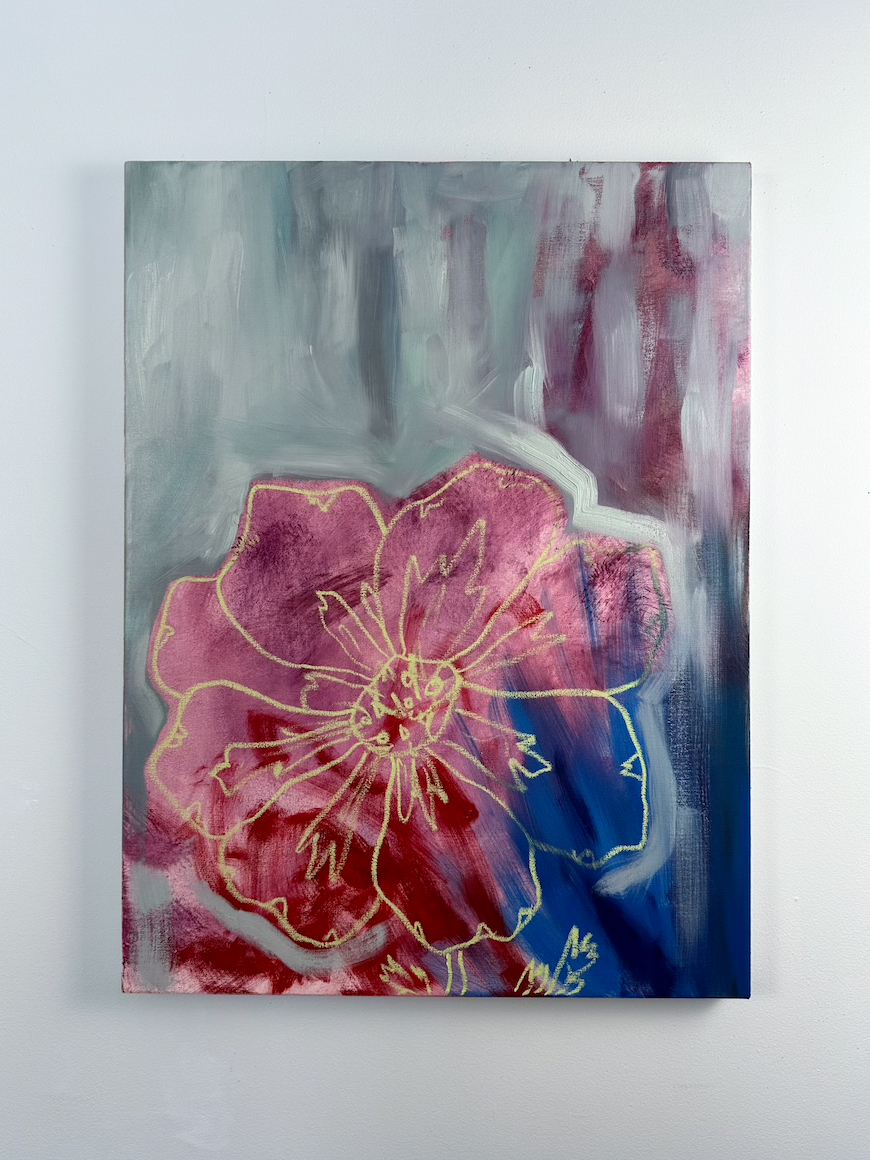 February, oil paint and oil pastel on canvas, 24×32”, 2026
