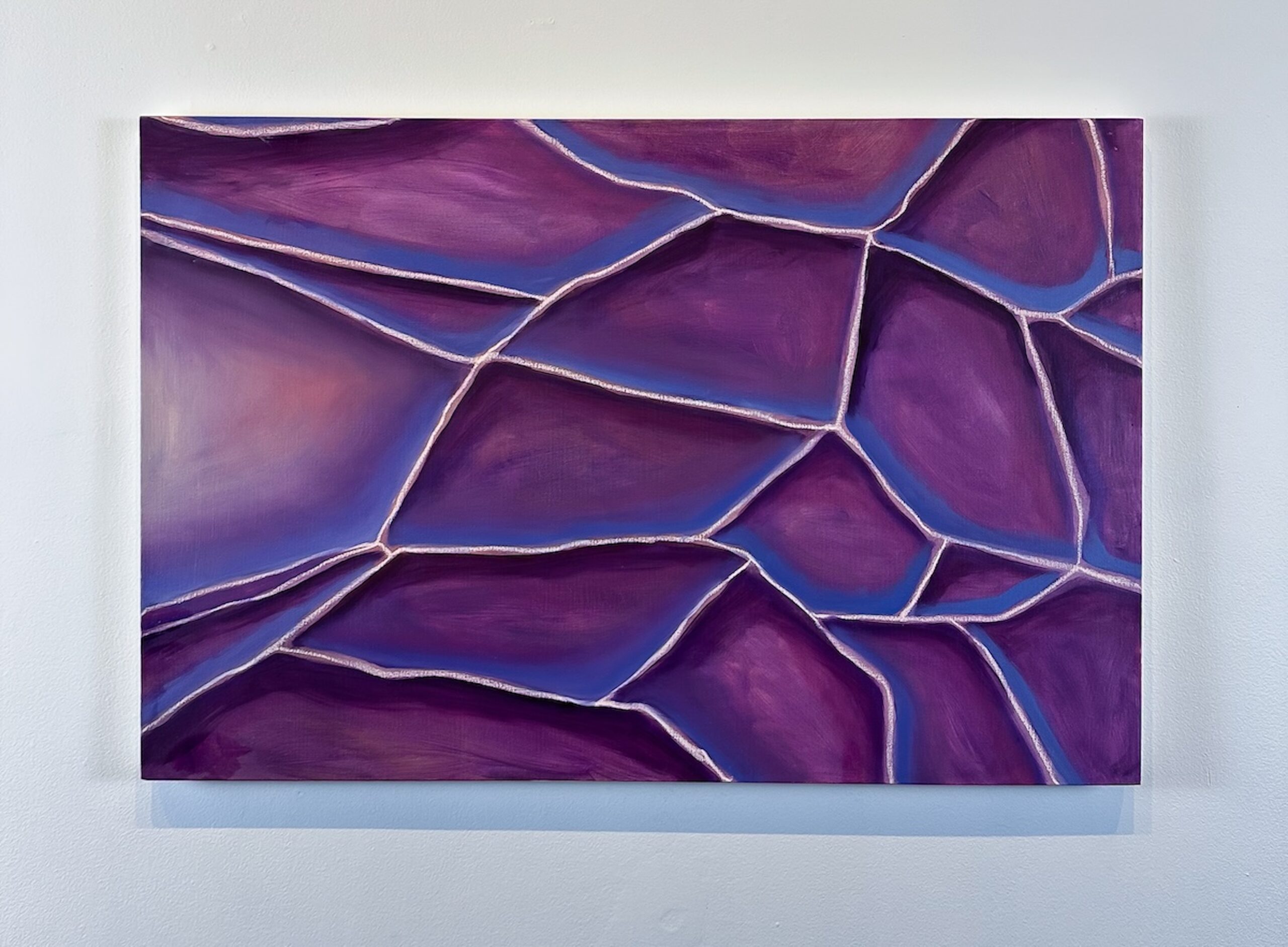 Weak spot, oil paint and oil pastel on canvas, 24×36, 2025